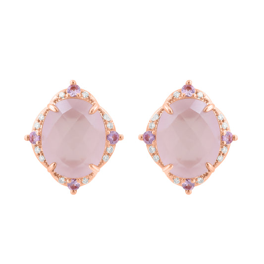 EFFY 14K ROSE GOLD DIAMOND (0.08 CTW) PINK(ROSE) QUARTZ PINK SAPPHIRE EARRINGS