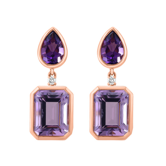 EFFY 14K ROSE GOLD DIAMOND (0.22 CTW) AMETHYST EARRINGS