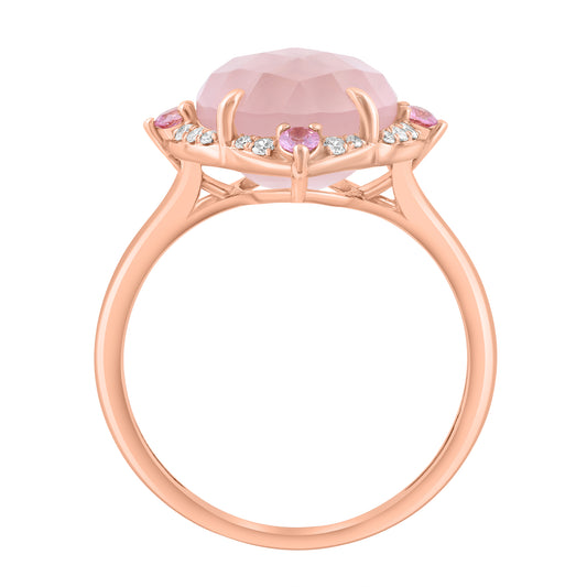 EFFY 14K ROSE GOLD DIAMOND (0.10 CTW) PINK(ROSE) QUARTZ PINK SAPPHIRE RING
