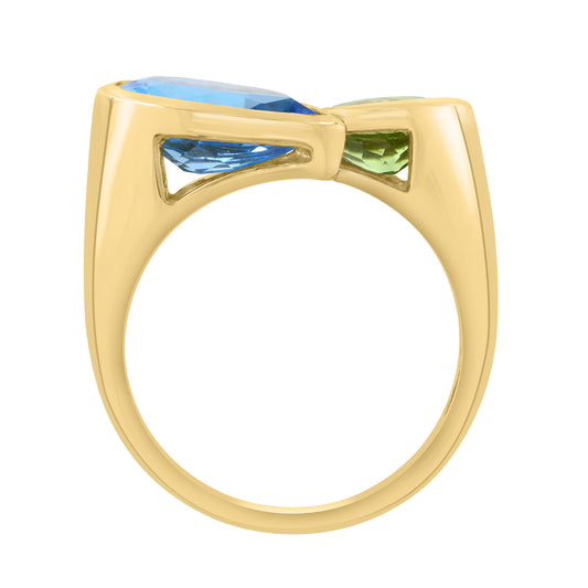 EFFY 14K YELLOW GOLD BLUE TOPAZ PERIDOT RING