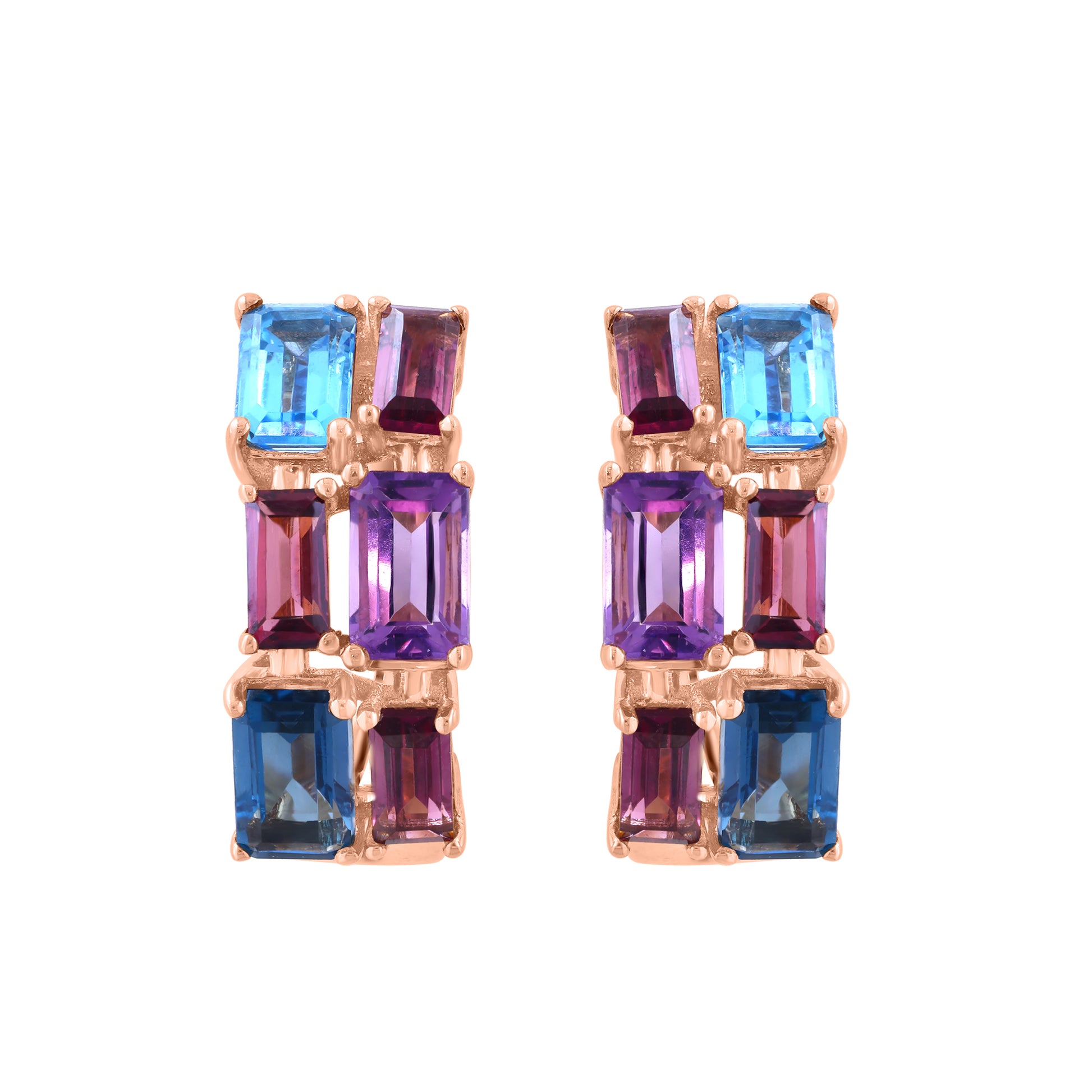 EFFY 14K ROSE GOLD AMETHYST, BLUE TOPAZ, LONDON BLUE TOPAZ, RHODOLITE EARRINGS
