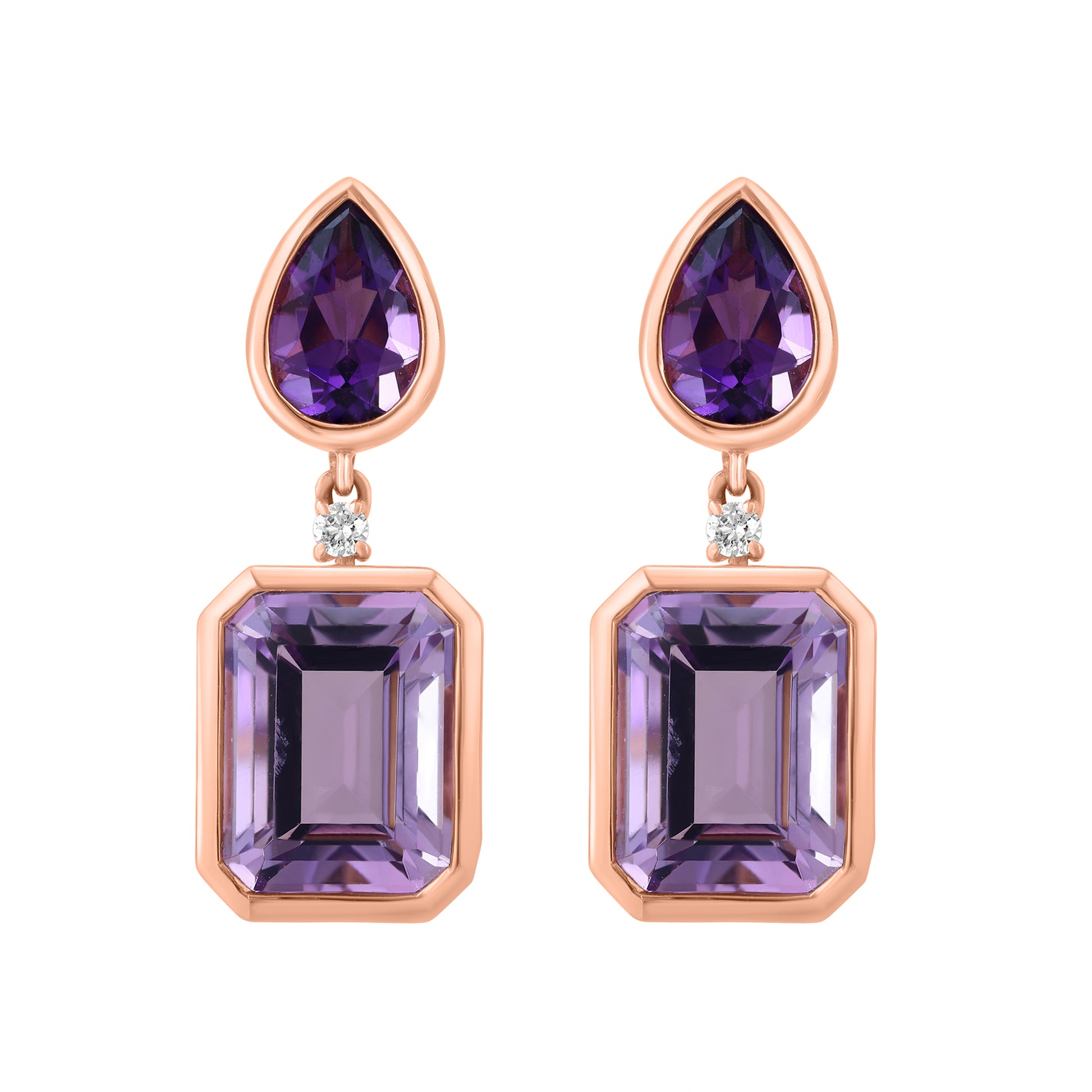 EFFY 14K ROSE GOLD DIAMOND (0.02 CTW) PINK AMETHYST EARRINGS
